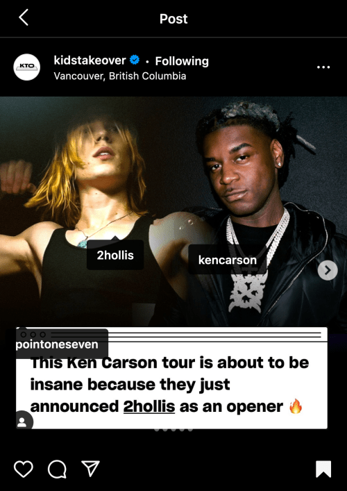 kto’s announcement for ken carson + 2hollis tour (2023)